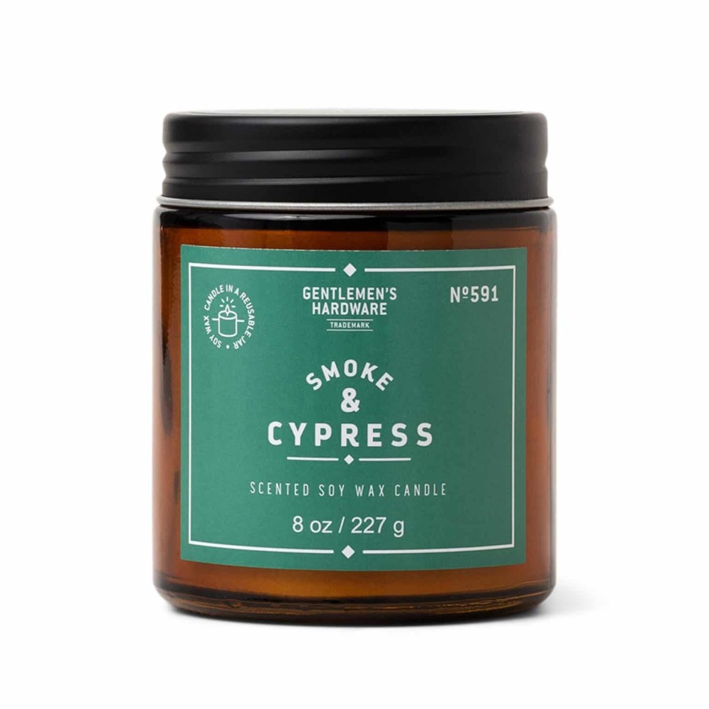 Op zoek naar een item met een stoer randje? Dan zit je goed bij Gentlemen's Hardware! Deze handgegoten kaars zit in een bruine, glazen apothekerspot en bestaat uit sojawax. Inhoud: 227 gram Geur: Smoke & cypress.
