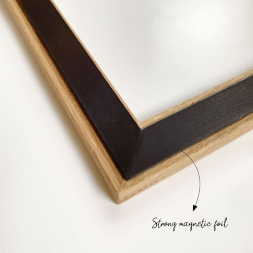 Deze eiken houten magnetische lijst houdt je foto, print of tekening vast op elke ijzerhoudende ondergrond zoals ons magneetbehang, magneetstickers. Ook op je koelkast of verwarming verwissel je snel en wanneer je wilt jouw favoriete kunstwerk door de sterk magnetische achterzijde.