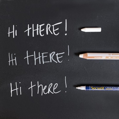 Beschrijfbaar met gewone, zachte bordkrijtjes, deze krijtstiften en multipotlood