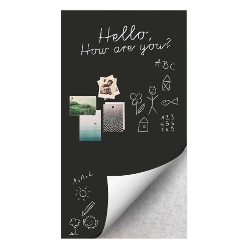 Plak deze sticker tegen je muur en créëer in een handomdraai een leuk magnetisch vlak op posterformaat! Je kan er op schrijven met krijtstift/bordkrijt en er al je favoriete foto's en prenten aan ophangen!
