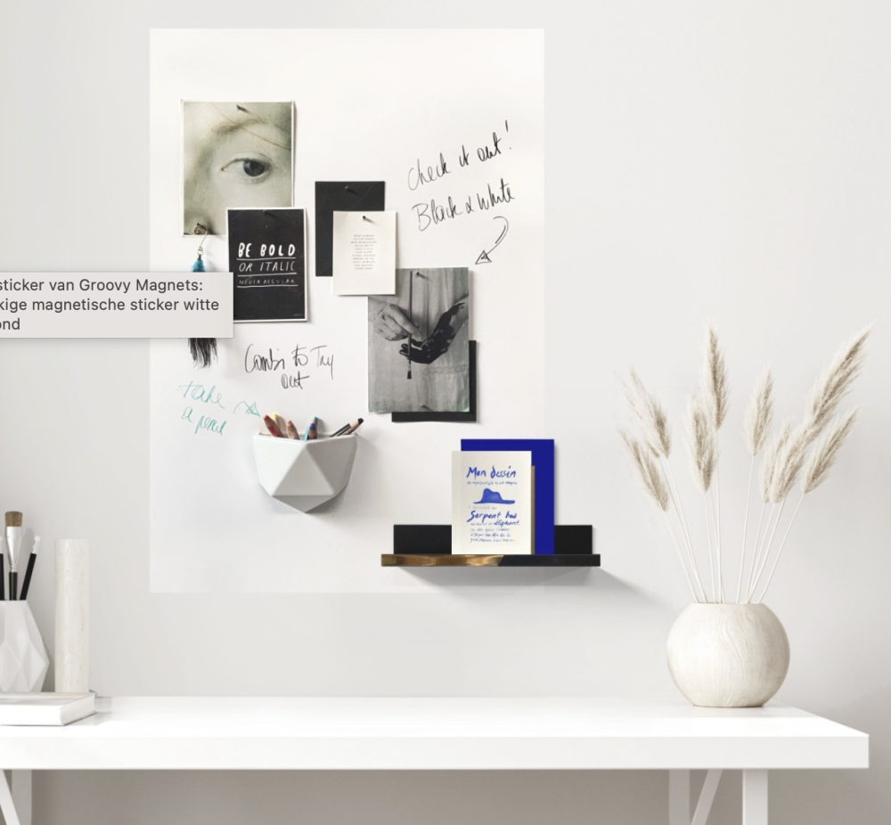 Deze sticker gebruik je als magneetbord: pin foto's en briefjes op de sticker met magneten. Ook handig en mooi in combinatie met een magnetisch wandplankje of planten/pennenbakje.