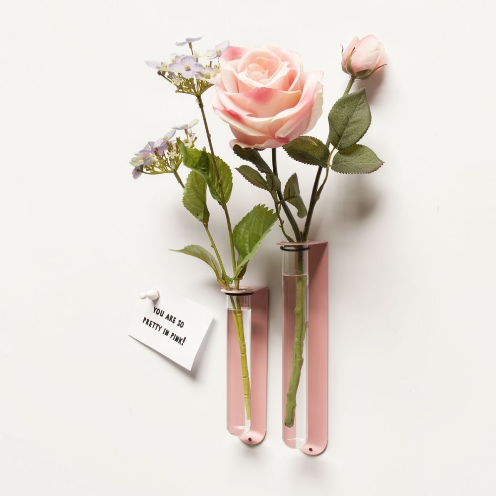 Deze bloemenvaasjes geven je muur kleur en geur. Met een paar losse bloemen of de overblijvertjes van een groot boeket ben je zo klaar. Ook leuk voor enkele droogbloemen of een stekje!