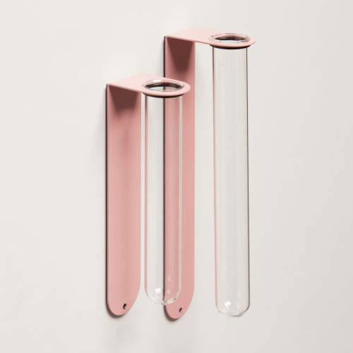 Materiaal: glazen pipetvaasje in gepoedercoated, roestvrije stalen houder.