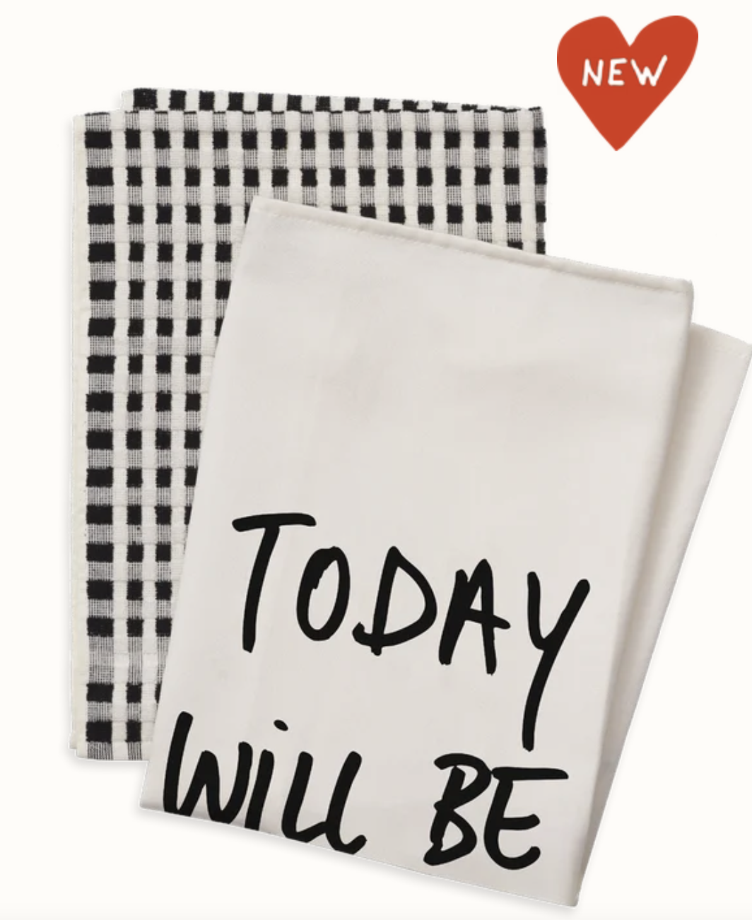 Twee theedoeken: één met helen b illustratie en één in zachte terry stof