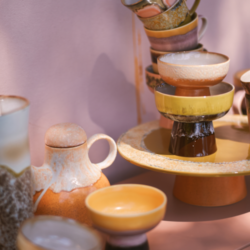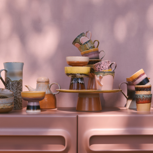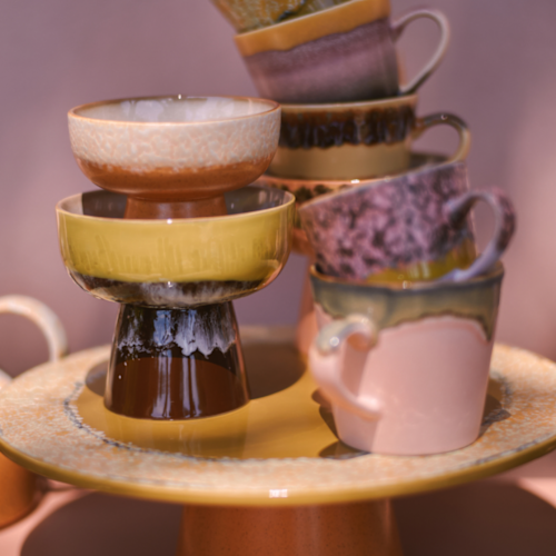 Instant crush bij de nieuwe 70's ceramic collectie van HK Living. Het leuke is dat je kan blijven mixen & matchen! Deze leuke tapas schaal op voet spat alvast van je tafel door de eigenwijze en gezellige kleurencombinaties.