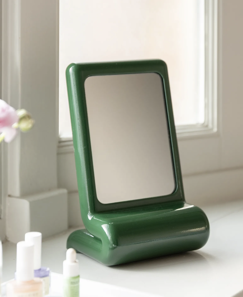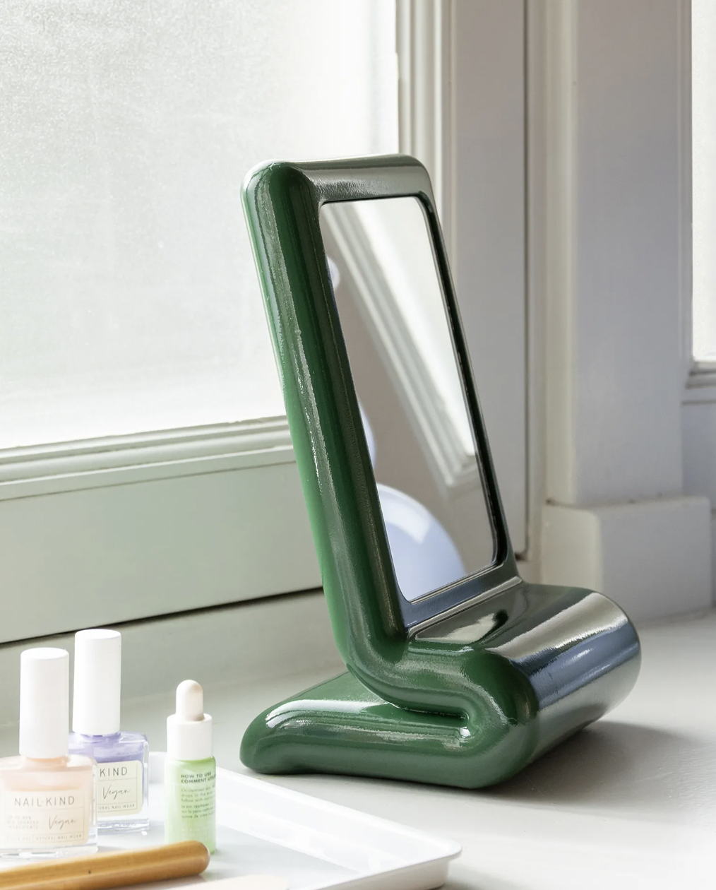 Meet deze Vanity Mirror van &k Amsterdam! Stoer en functioneel. Stijlvol en kleurrijk. Nederlands design met een speelse twist. Klaar voor deze eyecatcher in je interieur? Afmeting: 15x12.5x25 cm
