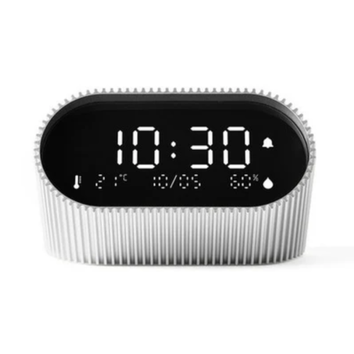 De Ray-wekker: ideaal voor zacht ontwaken en rustige nachten. Met een VA LCD-scherm dat altijd duidelijk zicht biedt, samen met omgevingstemperatuur- en vochtigheidssensoren, biedt het essentiële informatie.