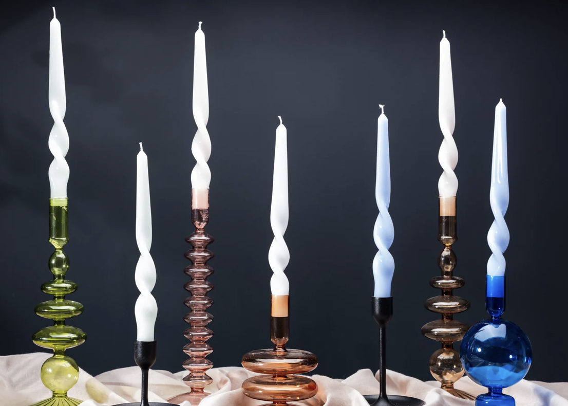 Geef je leefruimte een vrolijke twist met deze kaarsen Twists van Maegen.