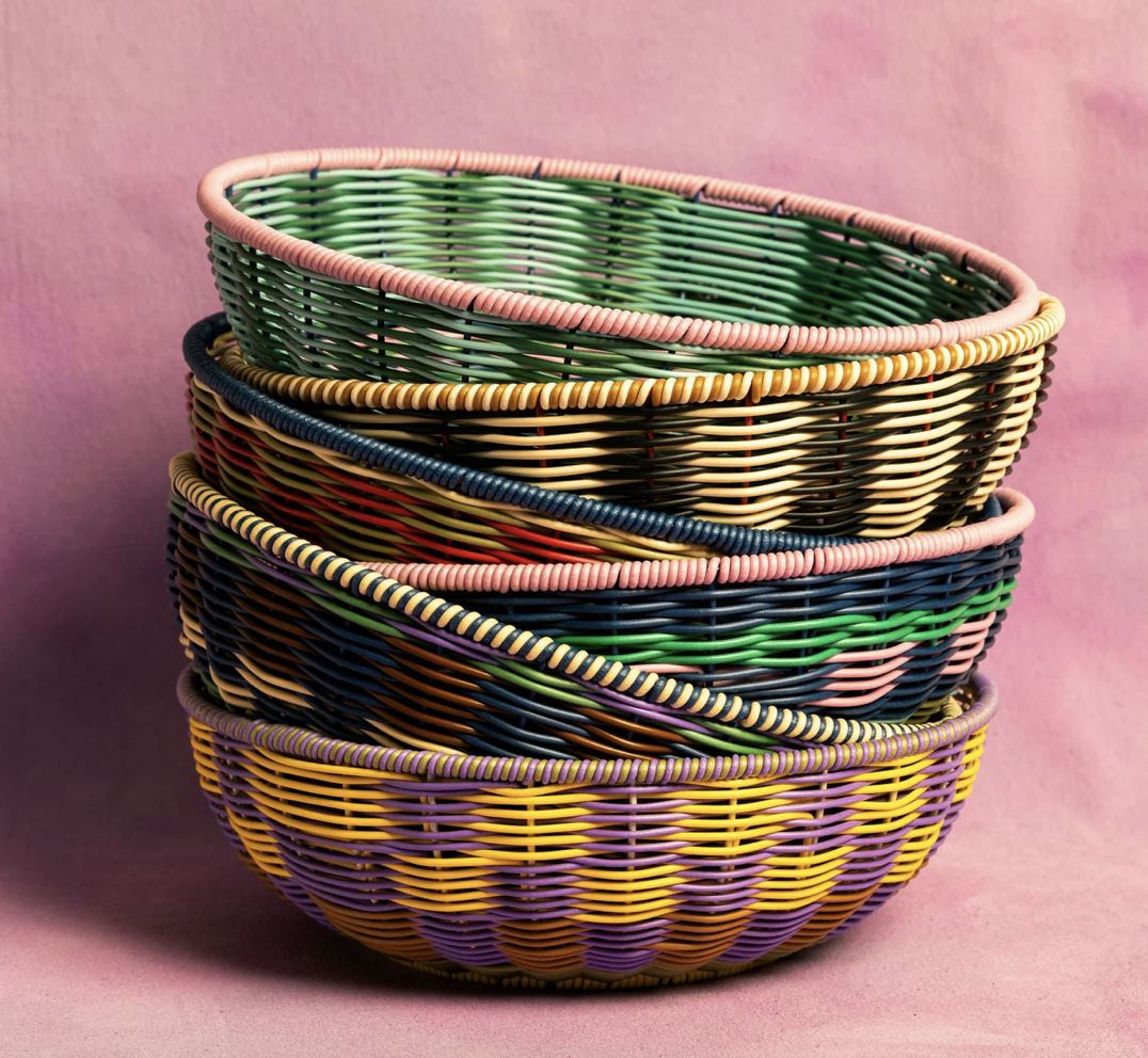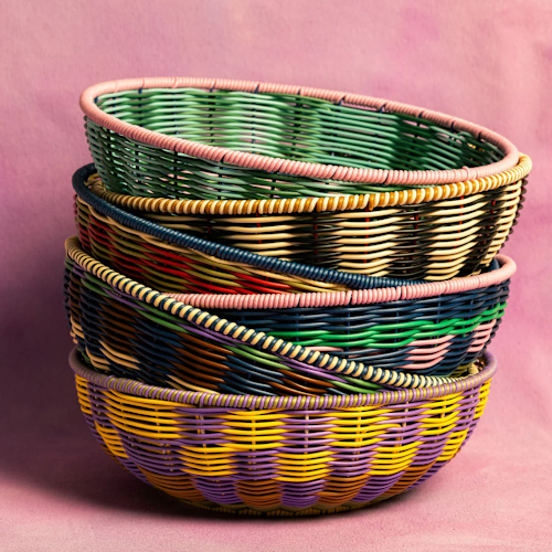 Breng kleur en warmte in huis met deze handgeweven large bowls van Maegen. Vrolijk design ontmoet dagelijkse functionaliteit... Een duurzaam lichtgewicht waarin je brood, fruit of andere essentials kan bewaren.