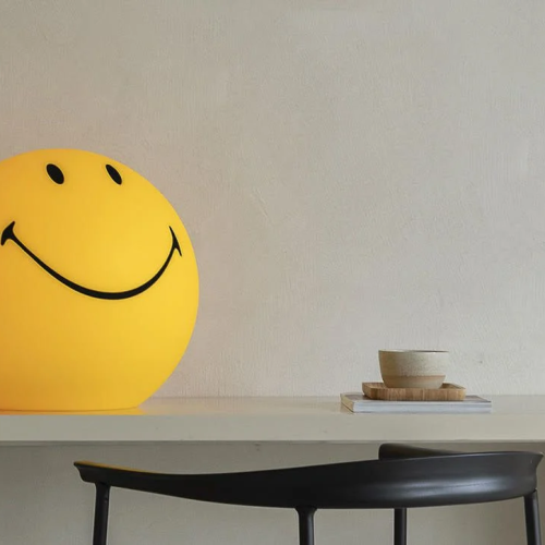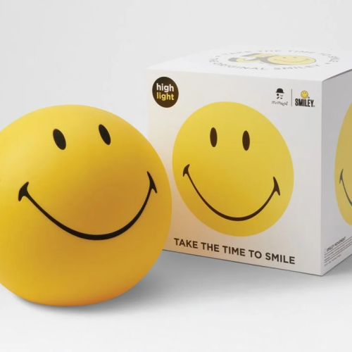 De Smiley® lamp is een vrolijke vriend in de kamer, de iconische gele stip met grote lach doet niets anders dan ruimtes, mensen en de wereld opvrolijken.