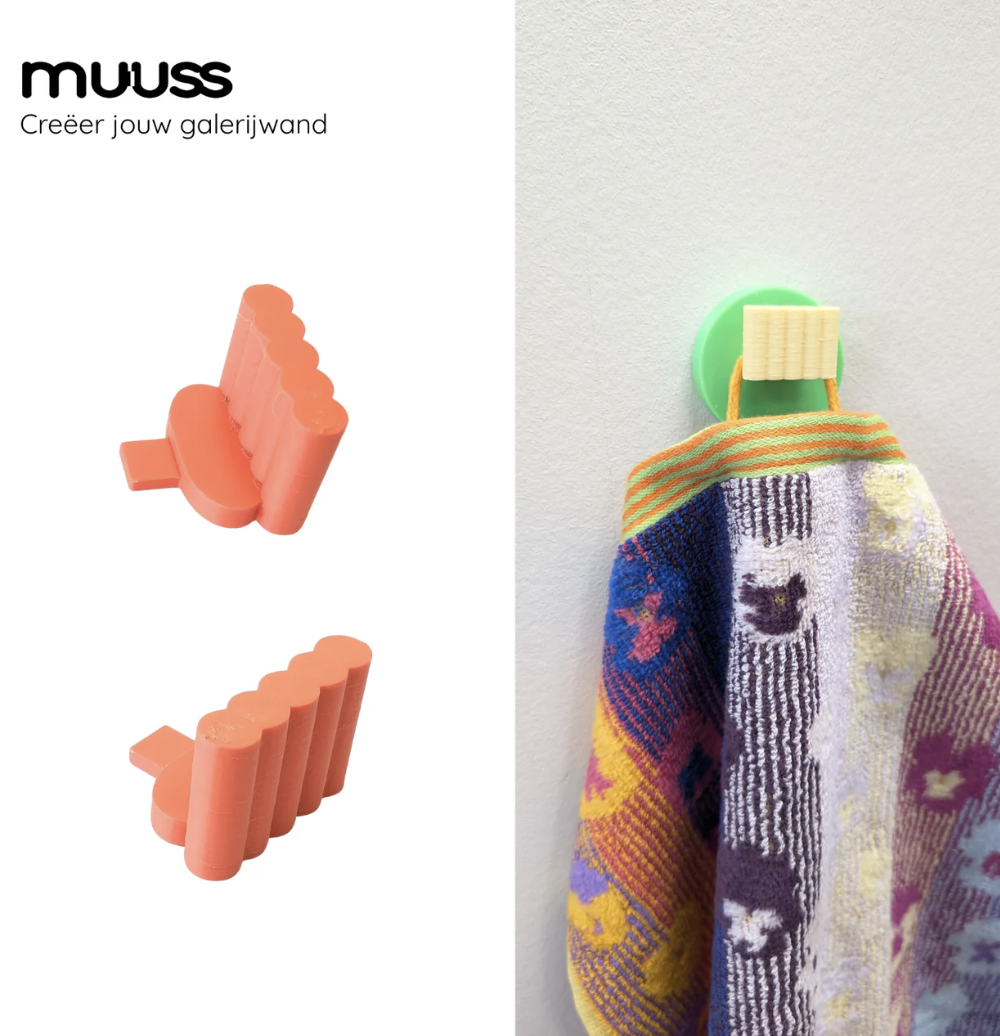 Muuss is een modulair interieurconcept dat bestaat uit één slimme basishouder en een serie verwisselbare schakels. Een handdoek wordt nog leuker aan zo'n mooi haakje. Helemaal handig dat je niet hoeft te boren.