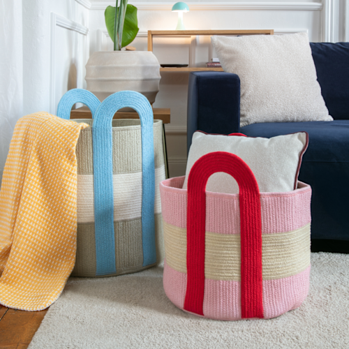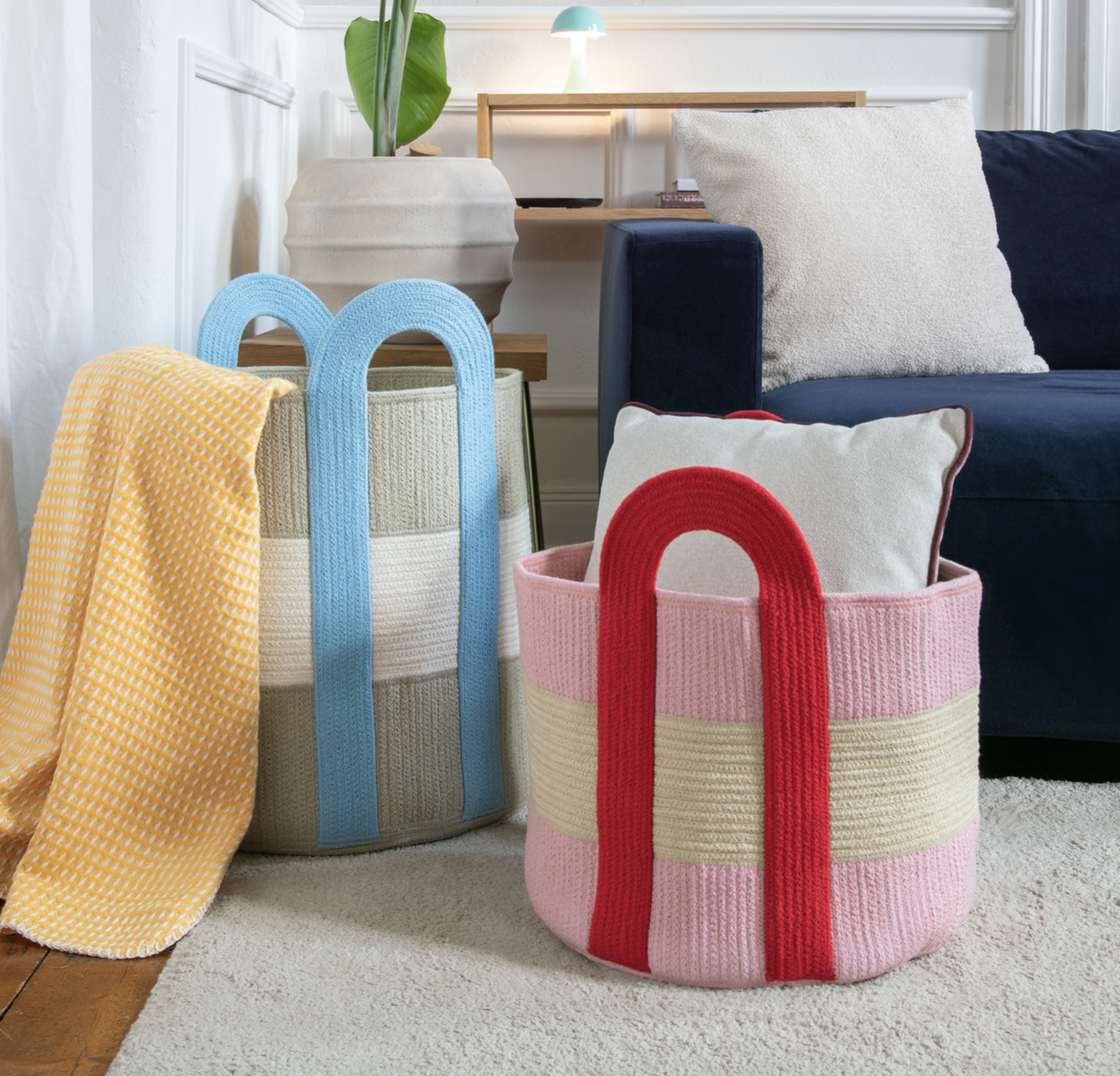 Deze kleurrijke mand is super decoratief en handig! Ideaal om er in de woonkamer je magazines, kussens of dekentjes in op te bergen. Of plaats ze in de badkamer als wasmand. Een echte eye-catcher!