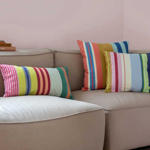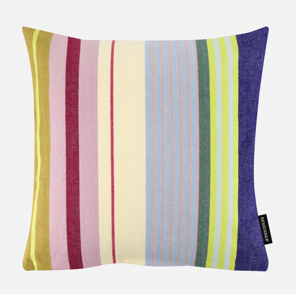 Het hele jaar door vrolijke kleuren? Dan zit je goed bij Remember! De leuke kleurencombinaties en het hoogwaardige materiaal van stevige geweven stof maken het kussen tot een gezellig hoogtepunt in je favoriete zetel.