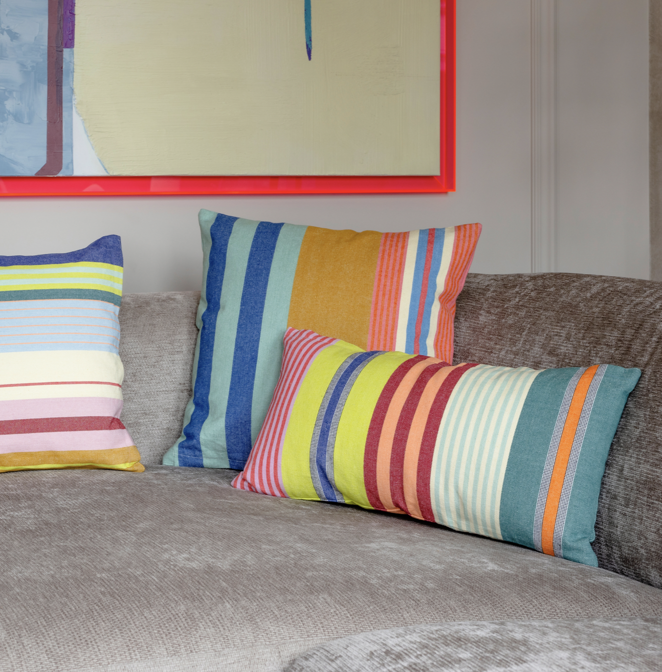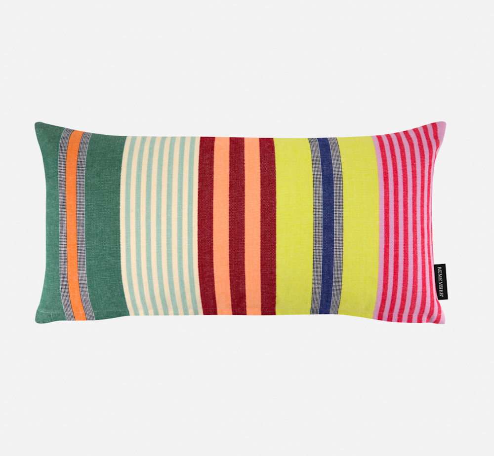 Het hele jaar door vrolijke kleuren? Dan zit je goed bij Remember! De leuke kleurencombinaties en het hoogwaardige materiaal van stevige geweven stof maken het kussen tot een gezellig hoogtepunt in je favoriete zetel.