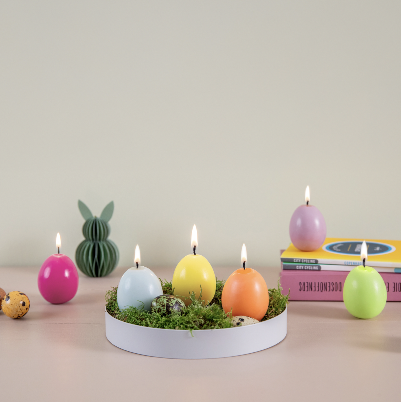Elke kaars is ontworpen in een andere kleur - van felgeel tot felroze tot zachtblauw. Als decoratie op de paastafel, als klein cadeautje of als speciale highlight in het paasnest - deze kaarsen verspreiden overal een vrolijke sfeer.