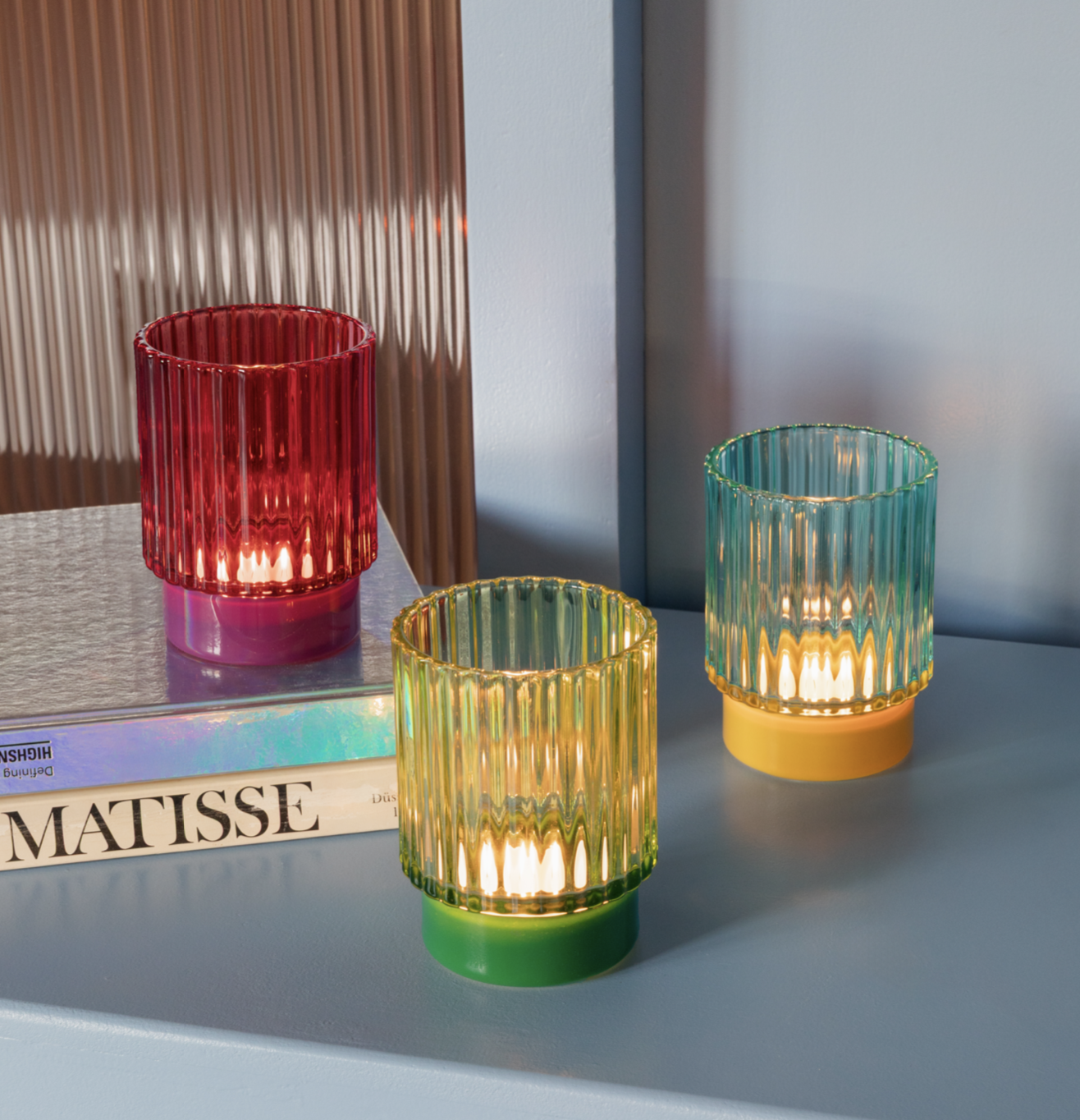 Voeg een warm kleuraccent toe aan je interieur met deze vrolijke theelichthouder.