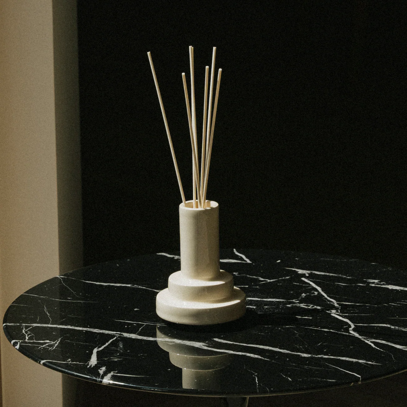 Een complete geur- en objectset: de stapelvaas gecombineerd met een diffuser vulling van 200 ml en geurstokjes.