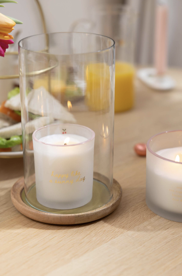 De Zusss geurkaars brengt met de perfecte geur een zonnige sfeer in huis. Deze geurkaars in off white glazen houder, met een elegante gouden tekst, past zo in je interieur. Gemaakt van hoogwaardige materialen, straalt de geurkaars warmte en gezelligheid uit. Met afmetingen die ideaal zijn voor elk plekje, is deze geurkaars een fijne aanvulling in elke woonkamer of slaapkamer.