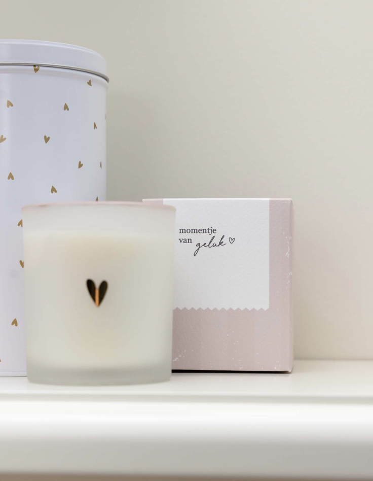 De Zusss geurkaars in glas is perfect voor een klein momentje van geluk in huis. Deze geurkaars straalt warmte uit met een elegant wit mat glas, afgewerkt met een subtiel gouden hartje en een roze randje. Het kaarsje komt in een stijlvol roze doosje, ideaal om cadeau te geven. Gemaakt van kwalitatief hoogwaardig materiaal, zorgt deze Zusss geurkaars in glas voor een sfeervolle toevoeging aan je interieur. Met compacte afmetingen past hij moeiteloos in elke ruimte.