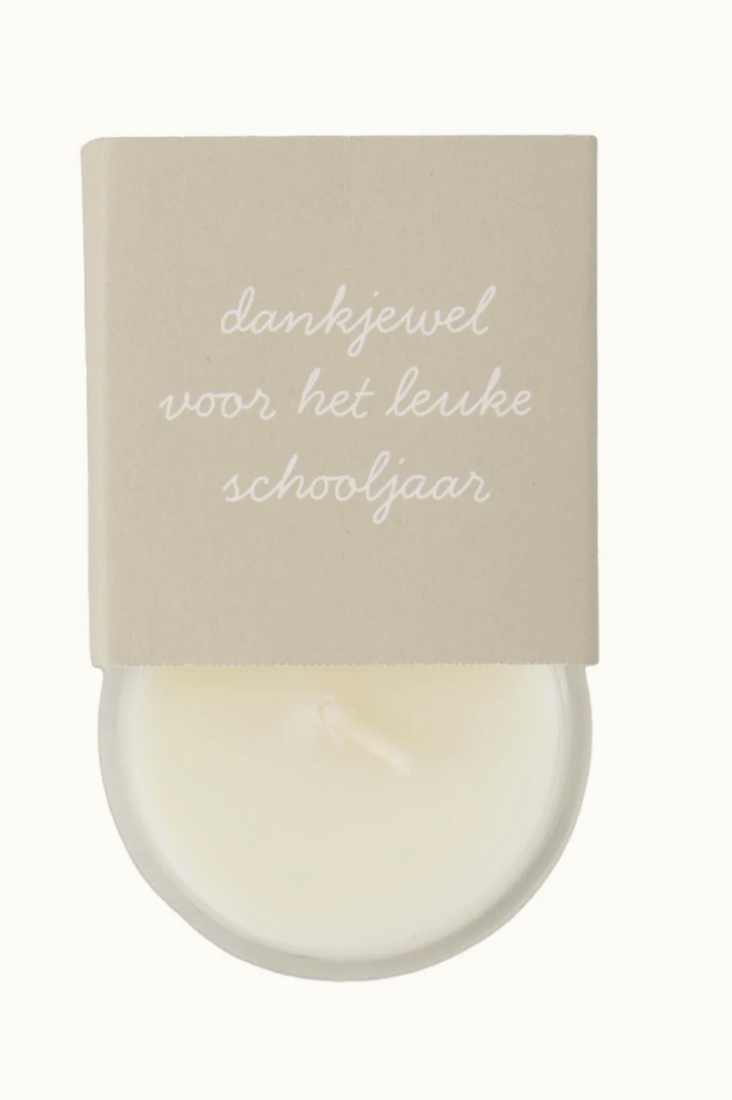 Het Zusss geurkaarsje is dé manier om een fijne sfeer te creëren en bijzondere momenten te vieren. Dit geurkaarsje brengt warmte en betekent een subtiele dankjewel voor het schooljaar. Met zijn rustige witte en lichtgroene kleuren past hij moeiteloos bij jouw interieur.