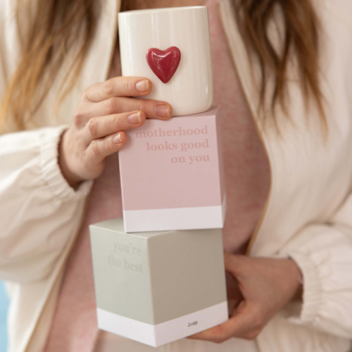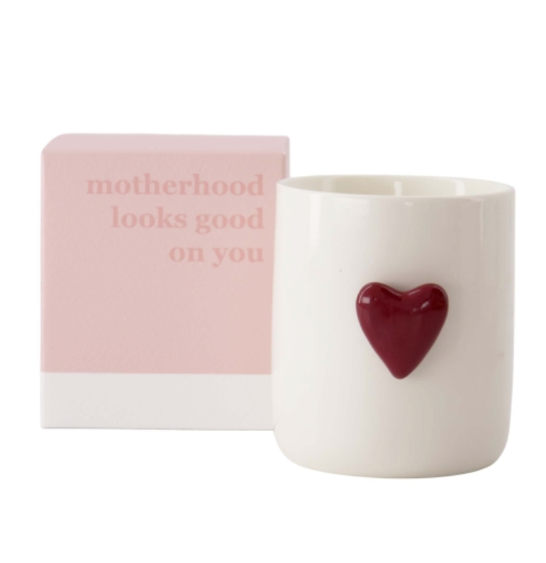 Deze Zusss geurkaars keramiek hart brengt warmte en sfeer in huis. Het stijlvolle doosje met de tekst "motherhood looks good on you" maakt het een perfect cadeau. De kaars heeft een compact formaat van ca. 7 x 7 cm, ideaal voor verschillende woonplekken.