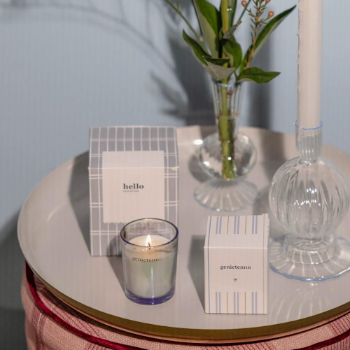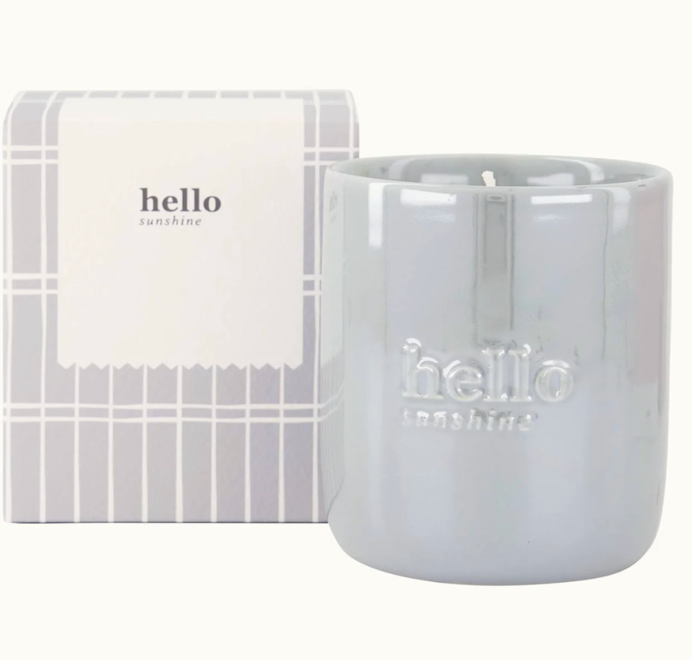 De Zusss geurkaars keramiek brengt warmte en sfeer in huis met zijn subtiele parelmoer blauwe kleur en stijlvolle witte accenten. Deze geurkaars is gemaakt van hoogwaardig materiaal en zit in een mooi doosje met de tekst "hello sunshine". De compacte afmeting maakt het een perfect accessoire voor elke ruimte.