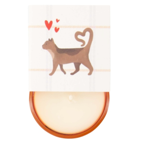 Dit Zusss geurkaarsje is het perfecte kaarsje voor een warme sfeer in huis. Het geurkaarsje komt in een oranje waxhouder met een wit/bruine wikkel met een lieve kat en hartjes. Gemaakt van hoogwaardige materialen en heeft een afmeting van ongeveer 5 cm doorsnede.