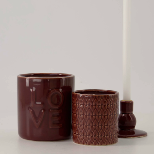Deze elegante kandelaar is een subtiele toevoeging voor je living. Met een warme, natuurlijke toets dankzij de diepe bordeaux kleur.