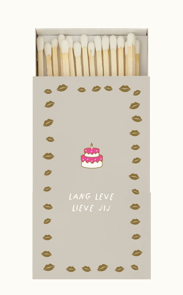 Deze Zusss lucifers zijn prachtig ontworpen met een lieve tekst en een subtiele roze kleur, perfect om een fijne sfeer mee te creëren.