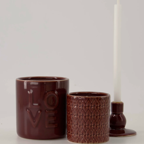 De Zusss geurkaars keramiek brengt warmte en sfeer in je woonkamer. Deze stijlvolle geurkaars is uitgevoerd in een warme bordeaux kleur en heeft een tijdloos design met het woord ‘LOVE’ subtiel verwerkt. Perfect voor wie houdt van een rustige, natuurlijke uitstraling.