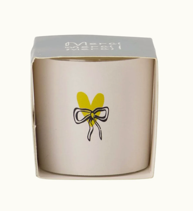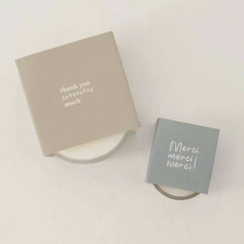Deze Zusss geurkaars is perfect om je woonkamer een gezellige en persoonlijke touch te geven. Het geurkaarsje straalt rust uit met een subtiel design en een zachte kleurcombinatie van wit en grijsblauw. Het kleine kaarsje komt verpakt in een fijne wikkel met de tekst ‘Merci merci merci’, ideaal om dankbaarheid te tonen.