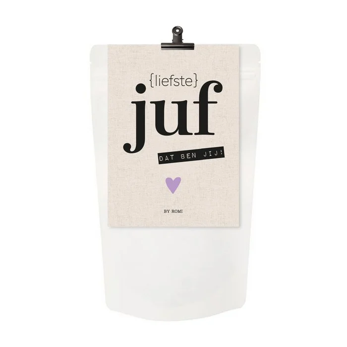 Verwen je lieve juf of tofste meester met dit lekkere pakket van By Romi. In het zakje zitten 5 heerlijke stukken chocolade in verschillende smaken van Tony's Chocolonely. Aan het zakje zit een mooie kaart geklemd. De achterzijde van de kaart is blanco, zo is er voldoende plaats voor een persoonlijke boodschap.