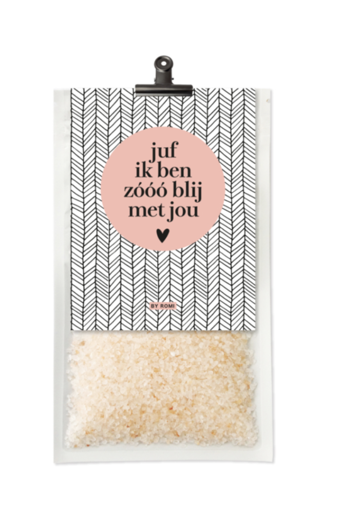Dit zakje is gevuld met heerlijke himalayazout en bevat een kaartje om een mooie boodschap aan je juf te richten.