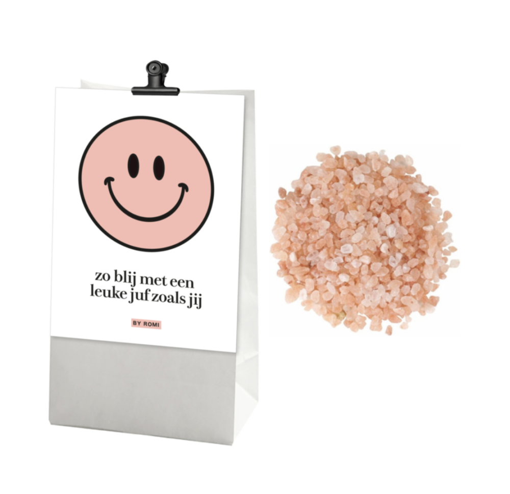 Dit zakje is gevuld met heerlijke himalayazout en bevat een kaartje om een mooie boodschap aan je juf te richten.