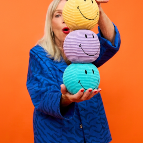 Instant happiness met deze vrolijke smileys in corduroy stof. Een knipoog in je zetel of een nieuwe vriend voor je kids. Gezelligheid verzekerd!