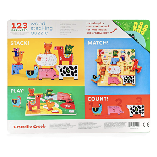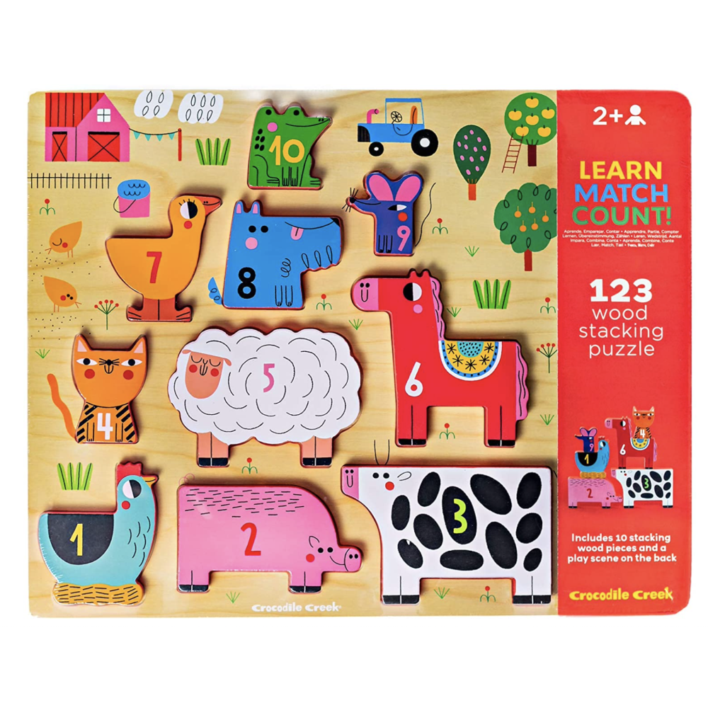 Deze puzzel heeft het allemaal! Er zijn 10 leuke dieren te ontdekken, die je kan stapelen, in de legpuzzel kan plaatsen, op het bord aan de achterzijde kan gebruiken voor een spel,.. goed voor veel plezier! Je kan ze ook gebruiken om al spelend te leren tellen!