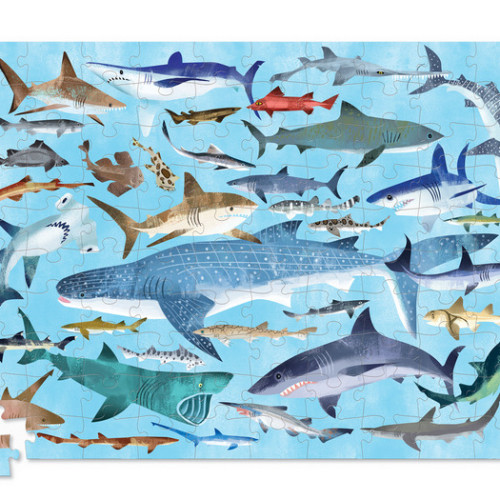 Er zijn 36 verschillende haaien te ontdekken in deze puzzel! In de koker vind je een handige legende waarop alle haaien afgebeeld staan met de respectievelijke naam.