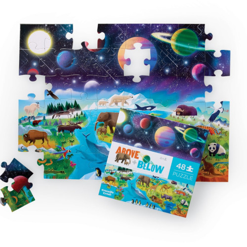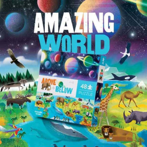 Met deze legpuzzel 'Above & Below' maken kinderen op een speelse manier kennis met onze wondere wereld. De puzzel bestaat uit 2 delen: 1 deel op de grond & het andere deel in de ruimte. Een leerzame puzzel waar heel wat te ontdekken is!