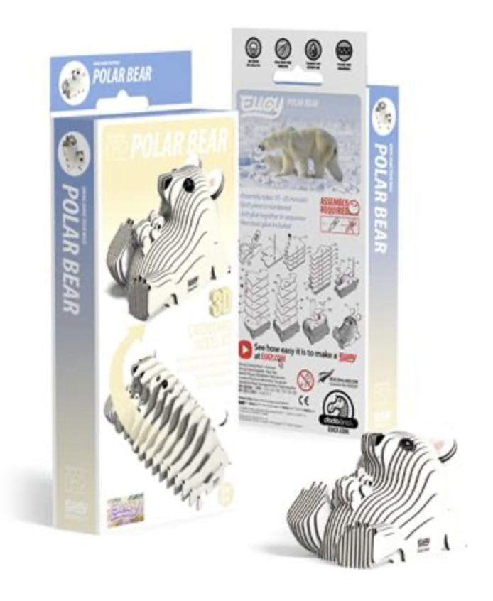 De 3D-modellen van Eugy zijn kunstzinnig vervaardigd uit milieuvriendelijke materialen en zijn rijk aan natuurlijke schoonheid en verbeelding. De modelstukken zijn genummerd en kunnen aan elkaar worden bevestigd met een niet-giftige, organische lijm (meegeleverd). De 3D-modellen bevatten educatieve weetjes, zodat kinderen al bouwend kunnen leren.