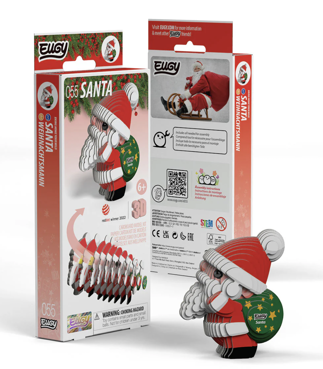 Met Eugy bouw je je eigen kleurrijke 3D model. Deze gedetailleerde en super schattige mini-versie van de kerstman zet je in elkaar door de verschillende stukken in de juiste volgorde tegen elkaar te plaatsen. Klaar? Geef je creatie een mooi plekje!