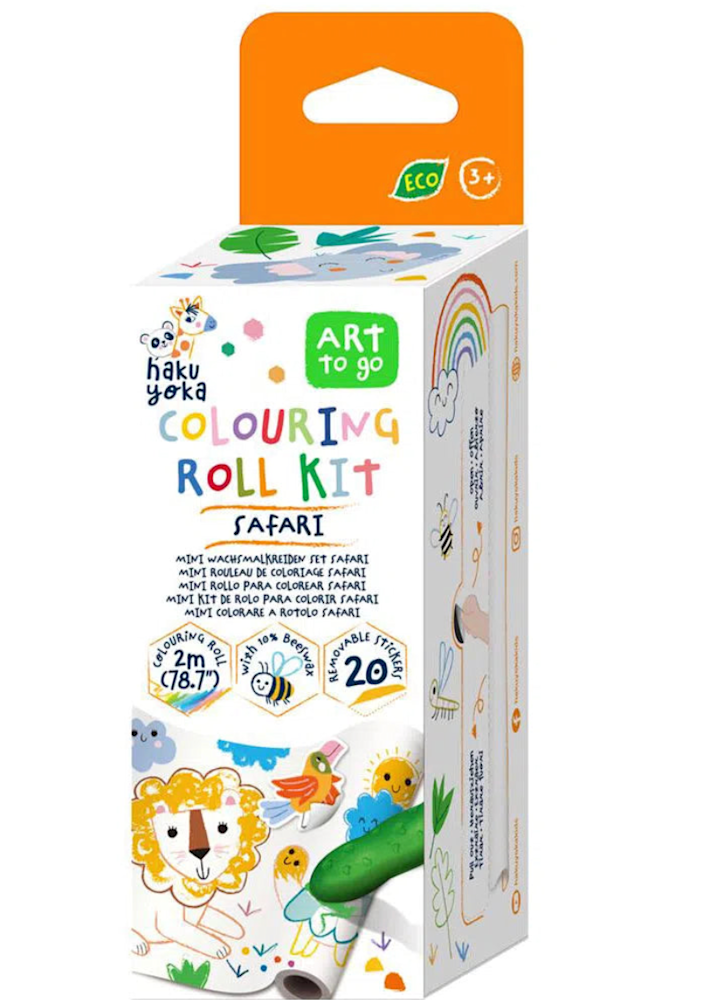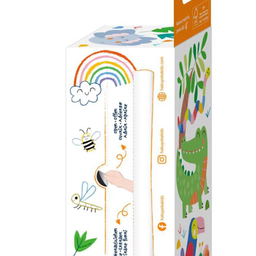 Haku Yoka Colouring Roll Kit bevat een 2 meter lange rol kleurplaat en 4 stuks Hi-Pea kleurpotloden. Een makkelijke en leuke manier om het uit de doos te rollen, en kinderen kunnen de rol om de 20 cm afscheuren, geholpen door de voorgeperforeerde stippellijn. Kleuren op een creatieve manier.