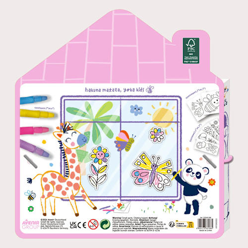 Set van 10 herkleefbare raamstickers die je naar hartelust kan inkleuren met de 4 bijgeleverde stiften.