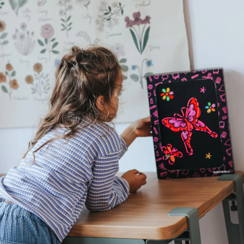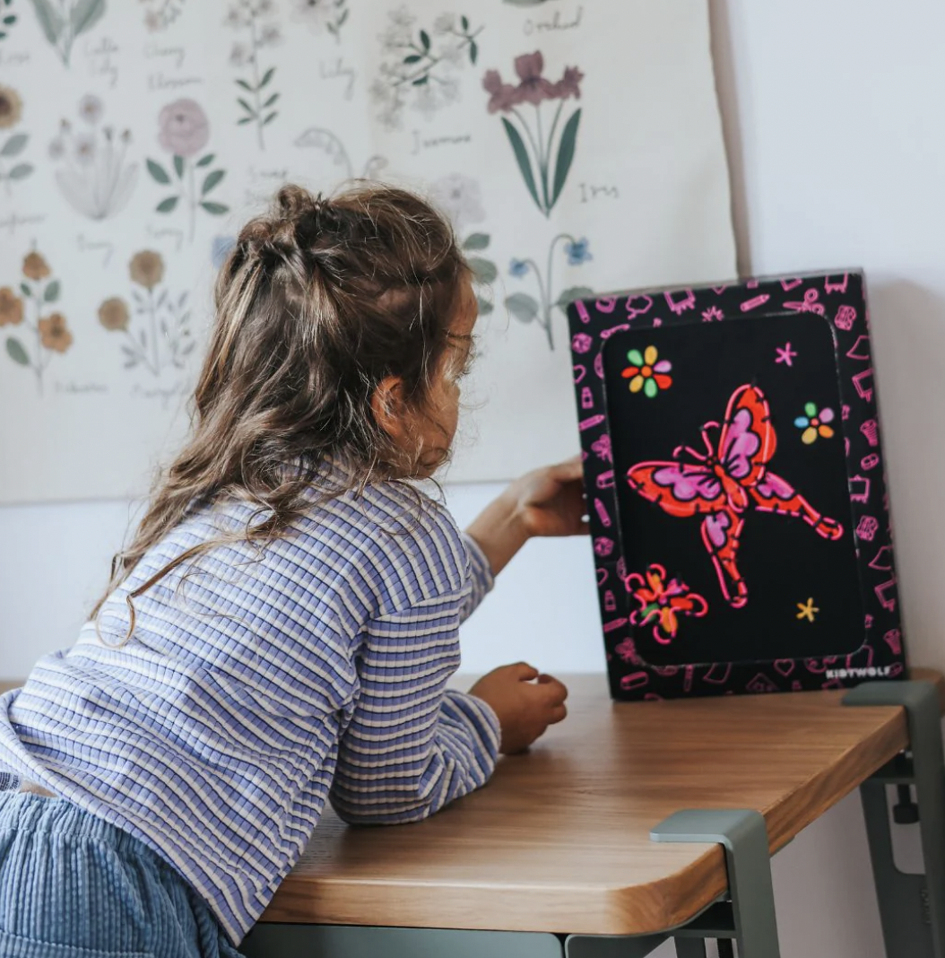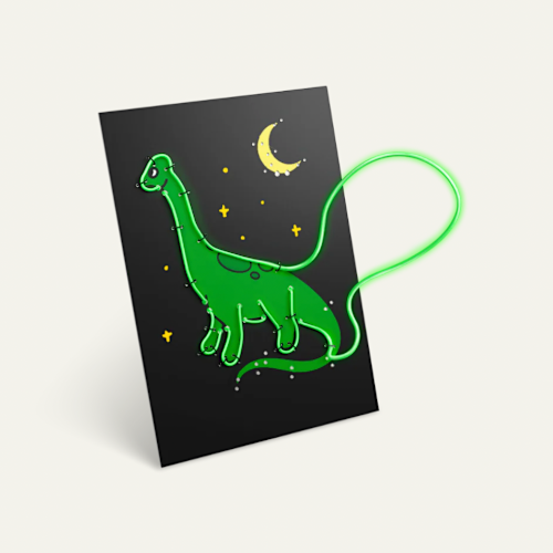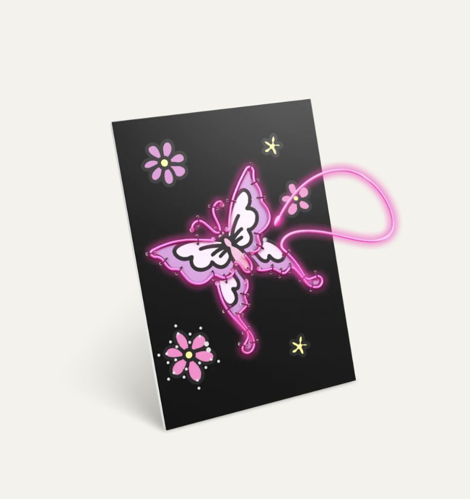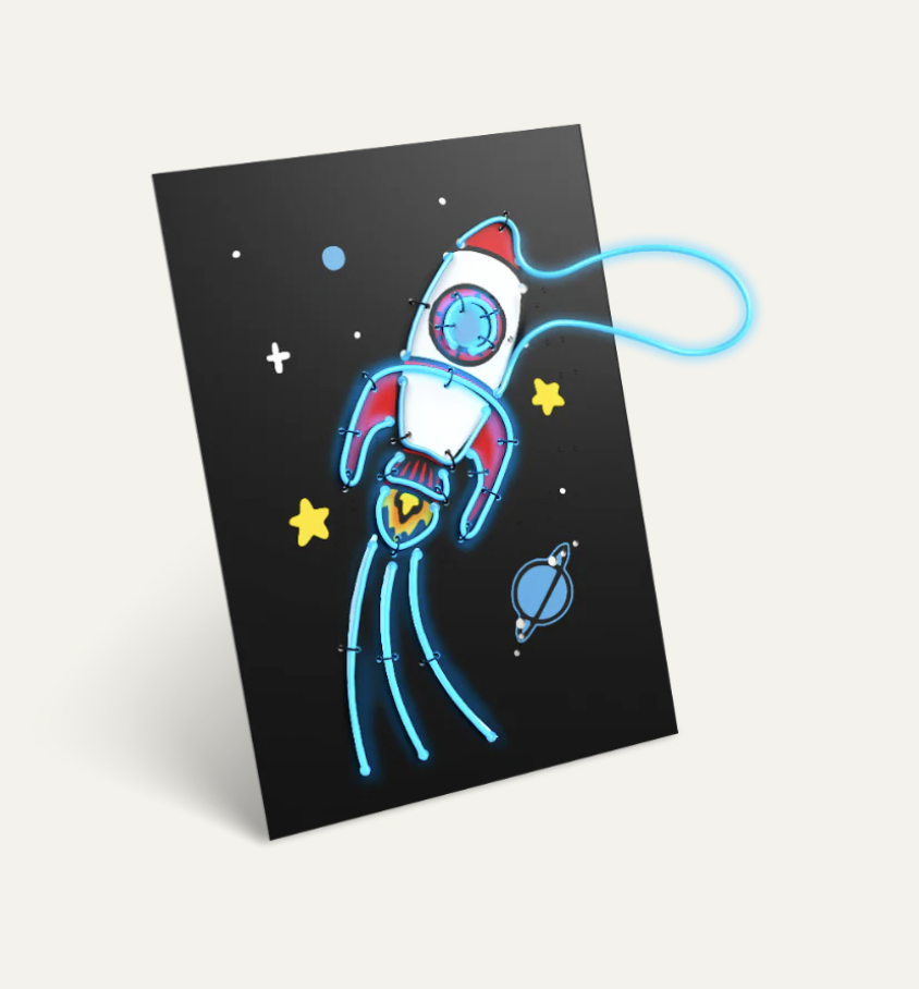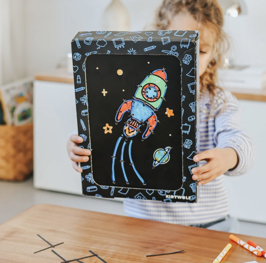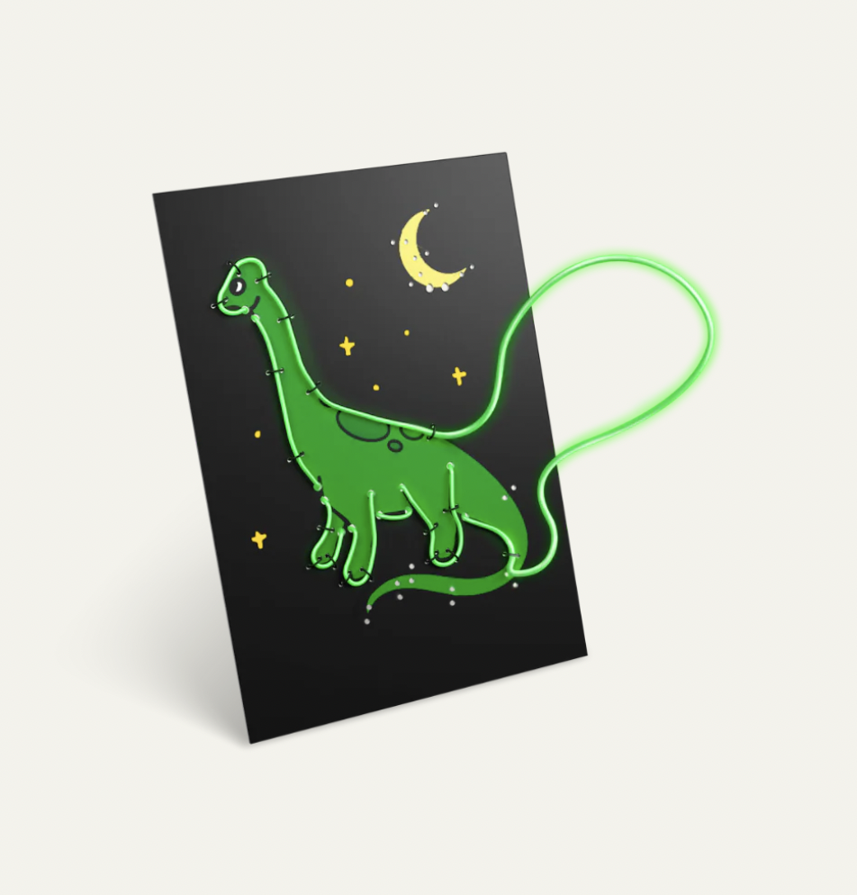 KIDYNEON geeft creatieve hobby's een nieuwe dimensie door er een vleugje magische verlichting aan toe te voegen! Met behulp van neonkleurige draad die in een voorgeperforeerd bord wordt bevestigd, maken kinderen schitterende, originele kunstwerken die ze trots kunnen tentoonstellen. Een handvaardige activiteit die de creativiteit stimuleert en tegelijkertijd de fijne motoriek en concentratie ontwikkelt. Zonder scherm, 100% boeiend!