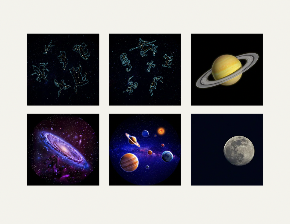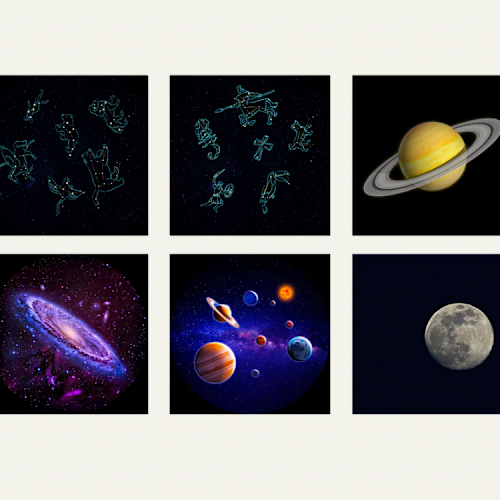 6 beelden rond het thema astronomie