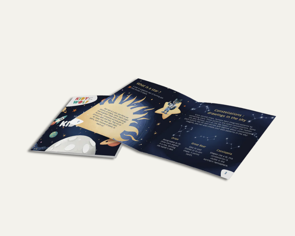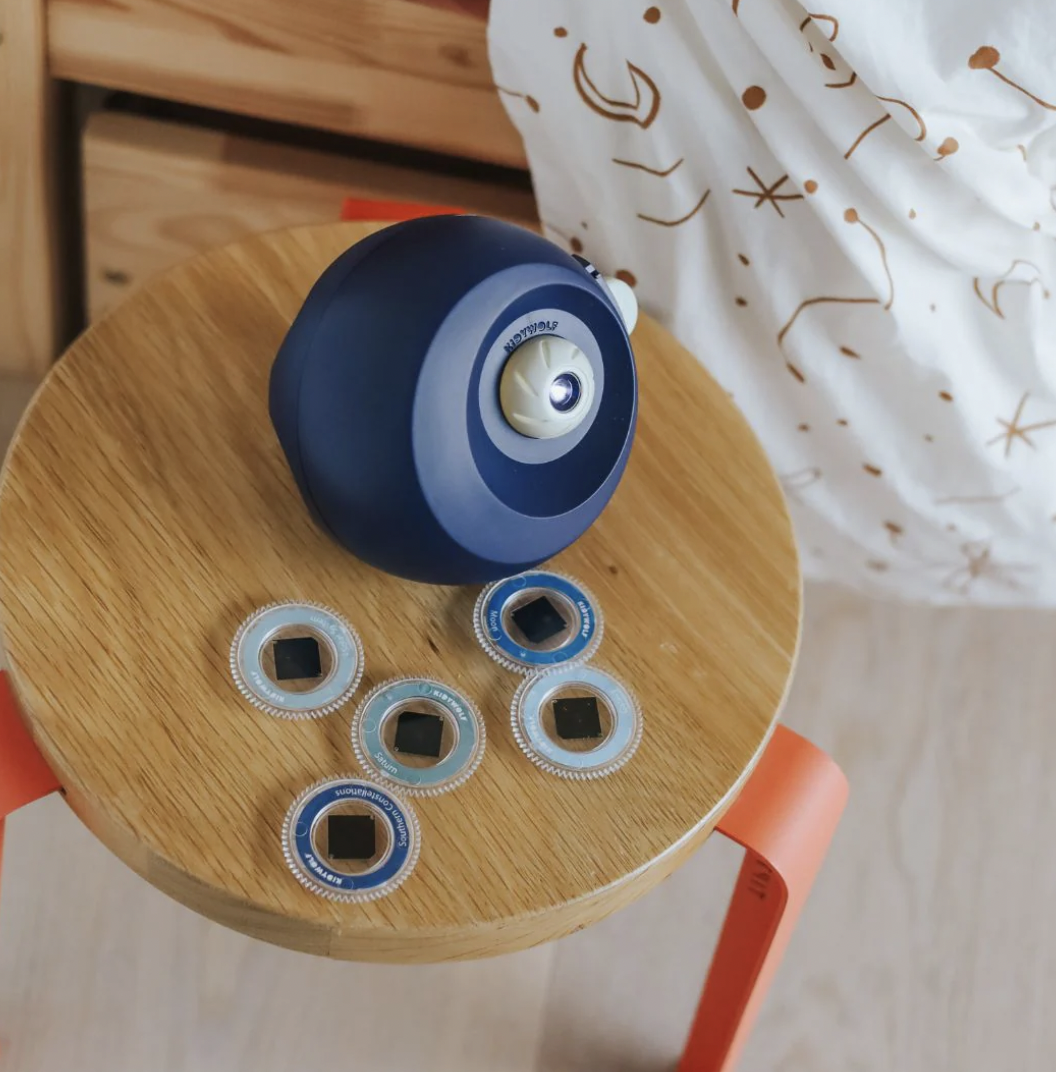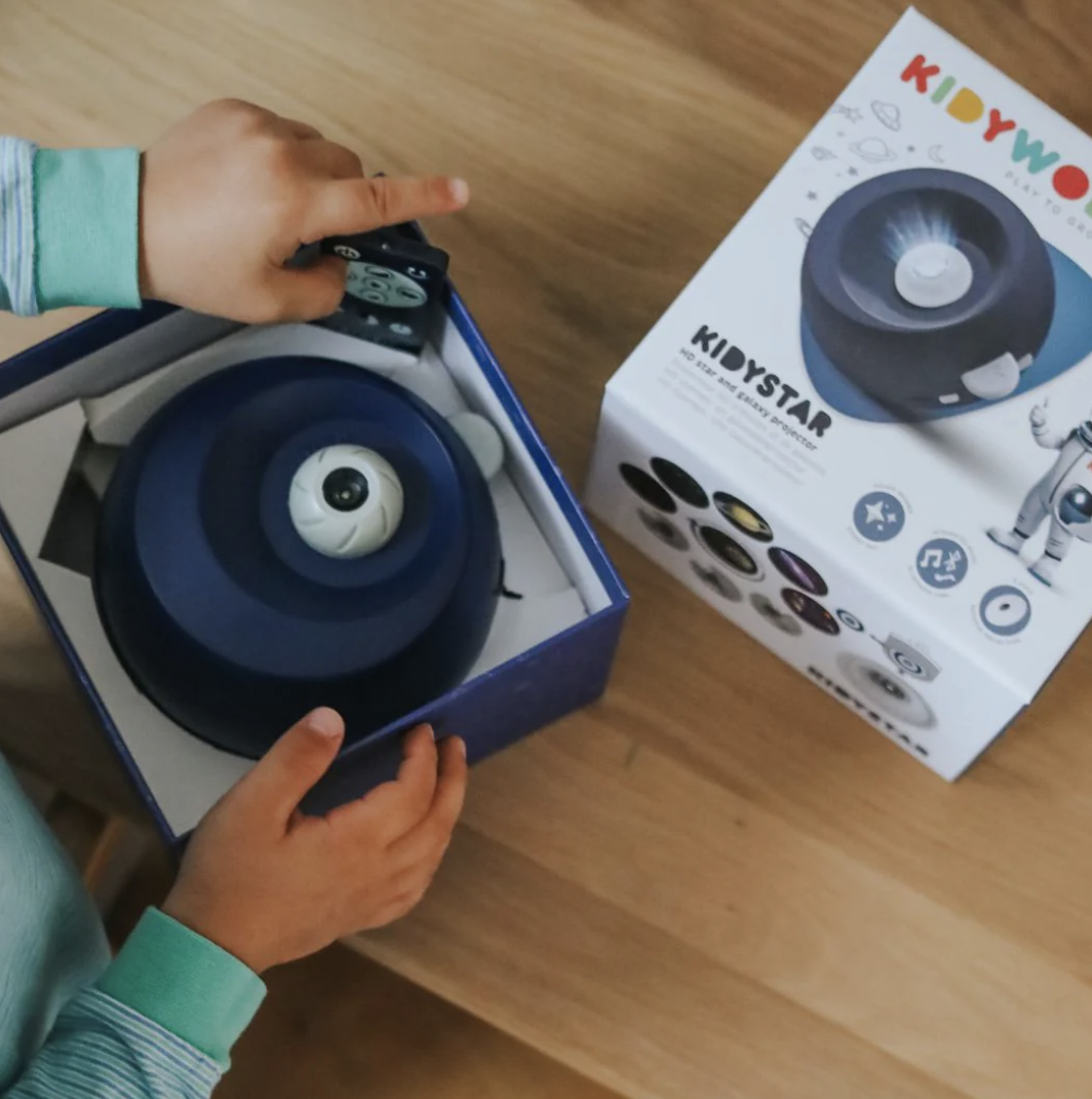 Breng magie in de slaapkamer van je kind met KIDYSTAR! Deze sprookjesachtige projector tovert muren en plafond om tot een lichtspektakel dankzij de 6 verwisselbare schijven. Met het geïllustreerde educatieve boekje wekt hij de nieuwsgierigheid en brengt hij rust bij het slapengaan. Een uitnodiging tot kalmte, dromen en ontdekken... voor zachte nachten.