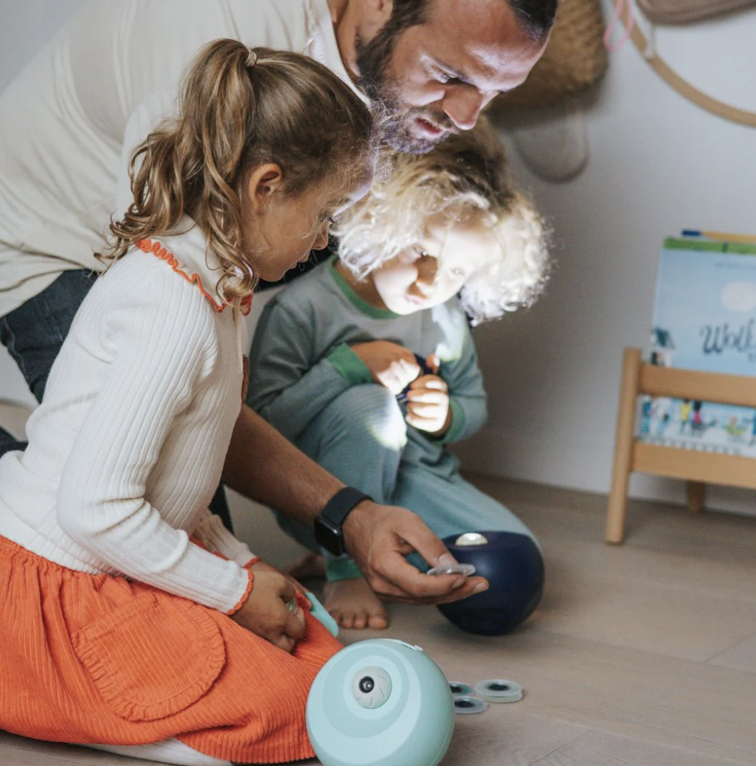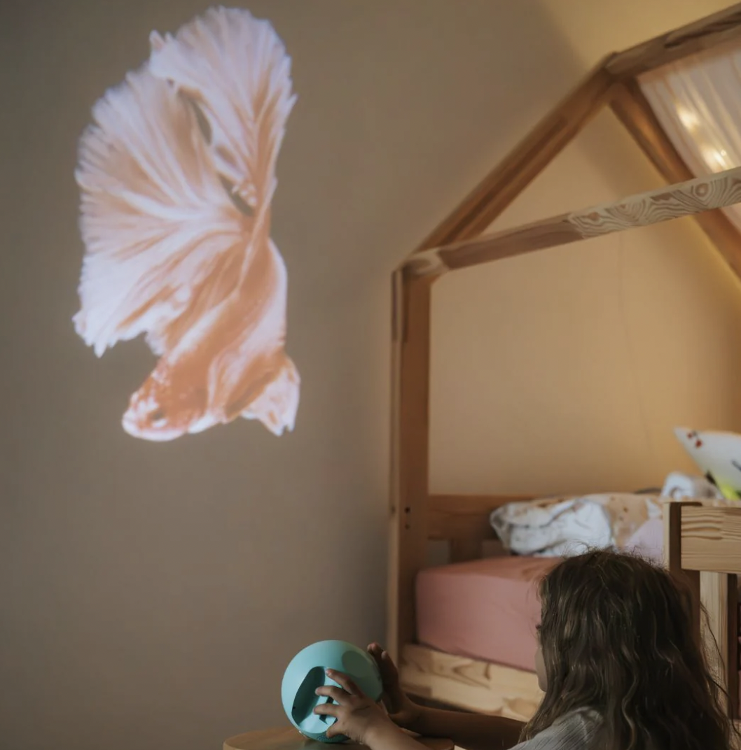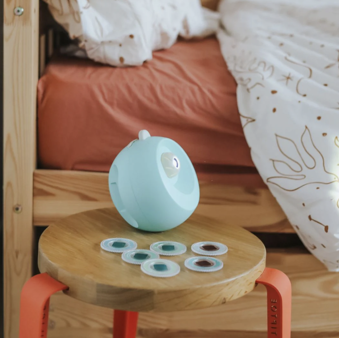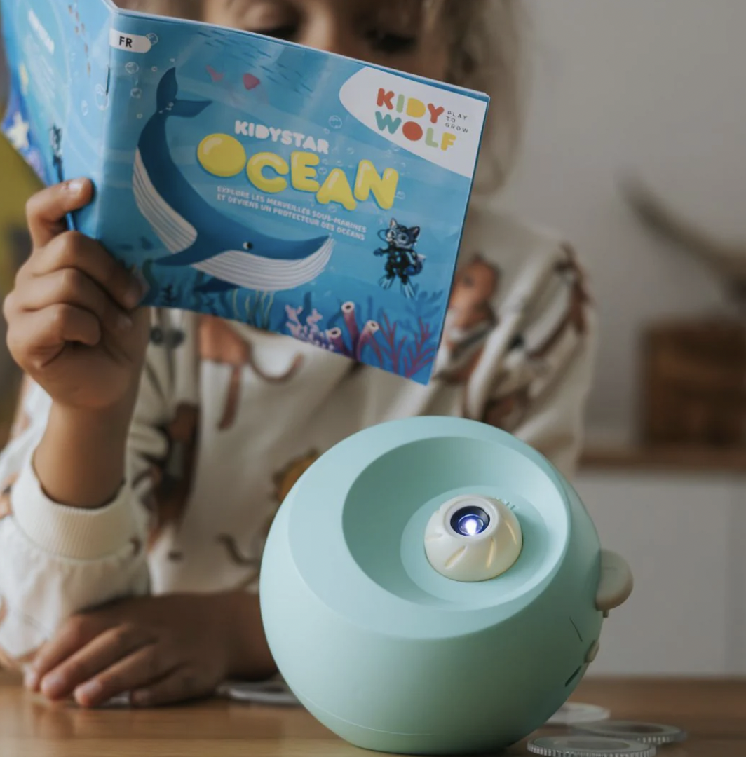 Breng magie in de slaapkamer van je kind met KIDYSTAR! Deze sprookjesachtige projector tovert muren en plafond om tot een lichtspektakel dankzij de 6 verwisselbare schijven. Met het geïllustreerde educatieve boekje wekt hij de nieuwsgierigheid en brengt hij rust bij het slapengaan. Een uitnodiging tot kalmte, dromen en ontdekken... voor zachte nachten.