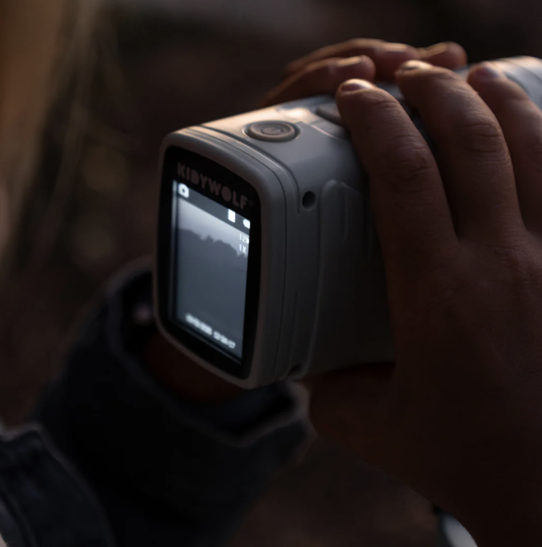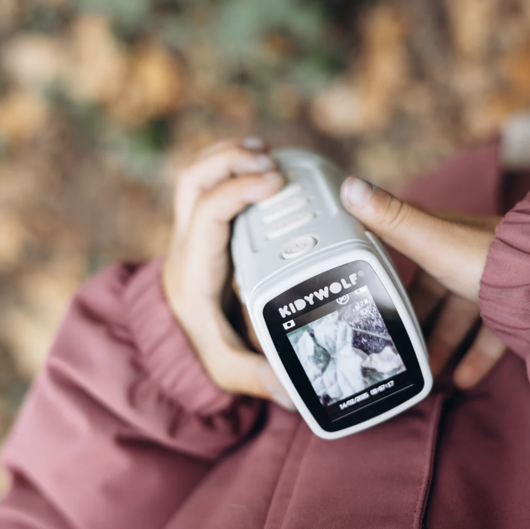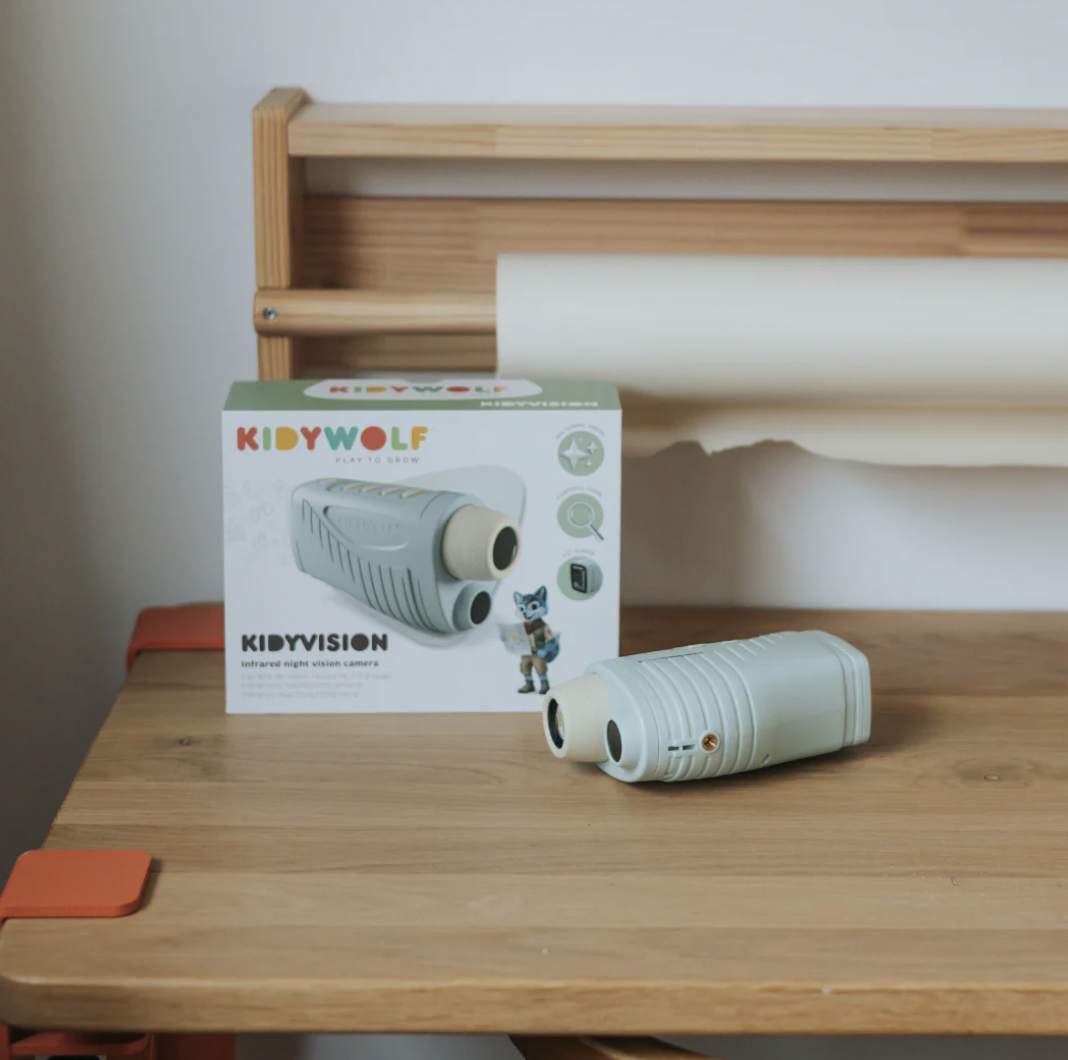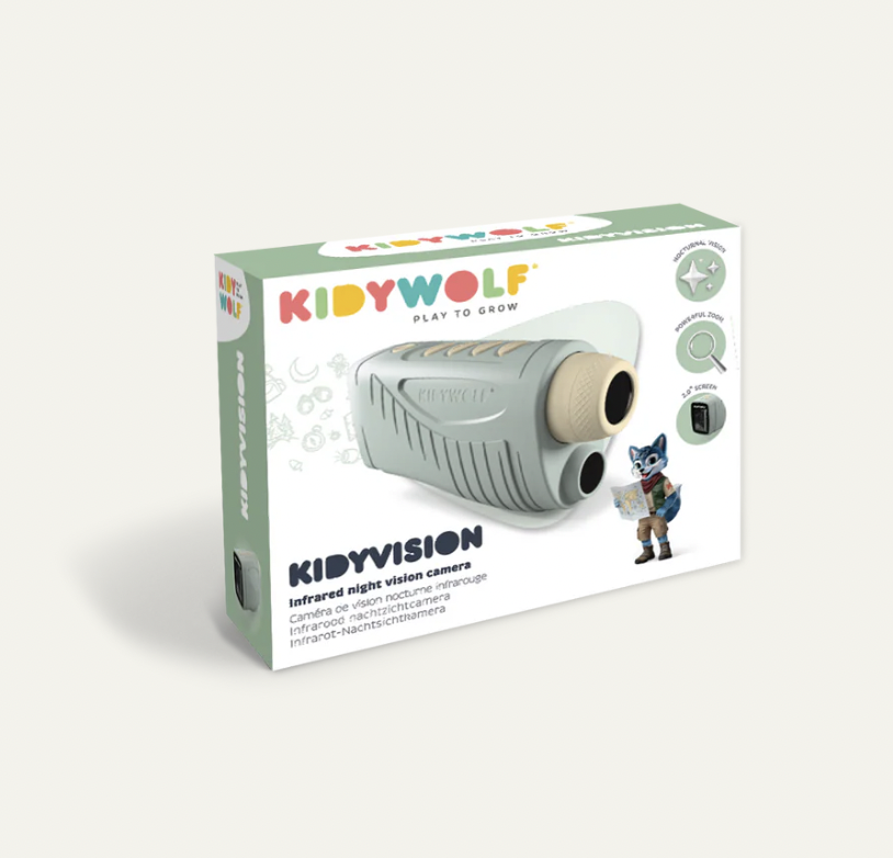 Als de avond valt, begint het avontuur! Met KIDYVISION kunnen kinderen zelfs in het donker hun omgeving verkennen dankzij het infraroodzicht tot 70 m. Foto's, video's, observaties of stille verkenningen: alles is mogelijk met dit meeslepende apparaat. Een unieke zintuiglijke ervaring om nieuwsgierigheid, aandacht en zelfstandigheid te ontwikkelen – zowel overdag als 's nachts.