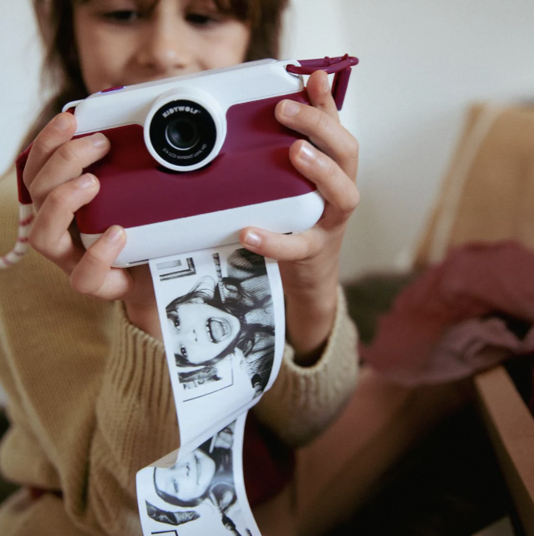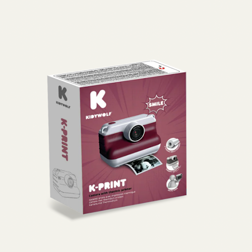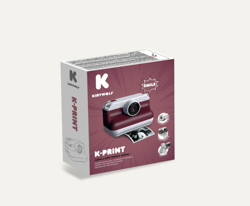 K-PRINT is een instantcamera die is ontworpen voor kinderen vanaf 8 jaar. Dankzij thermisch printen (op papier of stickers) print hij razendsnel, zonder inkt of cartridges. Een strak design, leuke filters en stickers inbegrepen: alles is aanwezig om je mooiste herinneringen vast te leggen, te personaliseren en in stijl te delen.