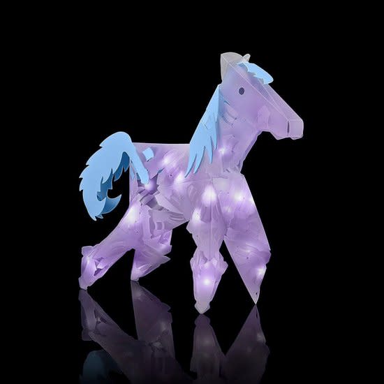 De set bevat alles wat je nodig hebt om direct aan de slag te gaan: 30 LED-lampjes met batterijhouder voor 2x AA batterijen (niet inbegrepen), 16 clips, 31 verbindingsstukken en speciaal gevormde elementen zoals een paardenhoofd, manen en staarten. Het geheel is ontworpen voor kinderen vanaf 9 jaar, en biedt niet alleen creatief plezier maar stimuleert ook logisch denken, concentratie en fijne motoriek.
