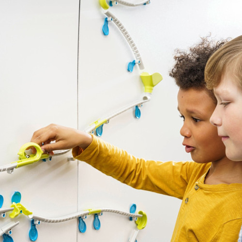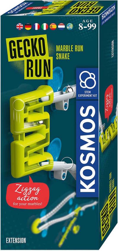 Met de Kosmos Gecko Run Starter Set bouwen kinderen hun eigen knikkerbaan nu gewoon verticaal! Met sterke zuignappen kunnen ze de baan op deuren, kasten en ramen bevestigen, wat zorgt voor een unieke spelervaring. Bochten, valkuilen en rechte stukken – de mogelijkheden zijn eindeloos. Terwijl knikkers de baan racen, leren kinderen spelenderwijs over zwaartekracht en snelheid.
